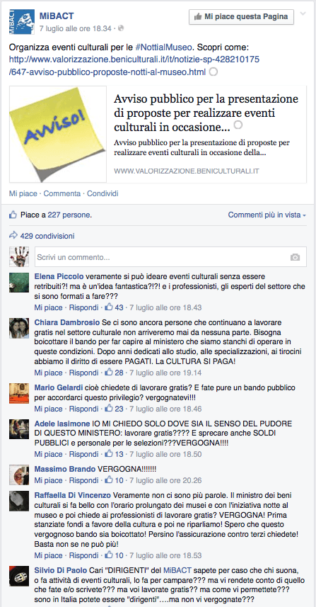 Veniamo al punto: comparto cultura. In queste ore è tam tam sul web.