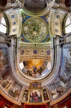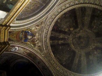Decido di entrare, penso alle pitture parietali a fresco, alle volte, agli stucchi, i decori.