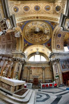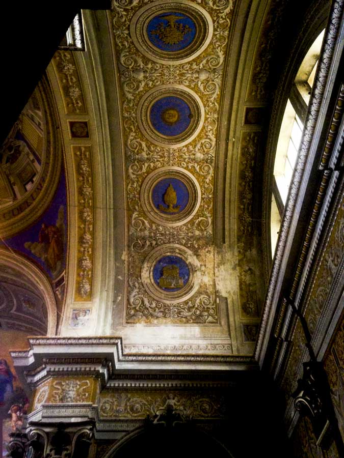 Ho tirato il naso all’insù. La volta della navata centrale, le volte a crociera delle navate laterali, le pareti decorate, i pilastri dipinti: non potevo credere ai miei occhi!