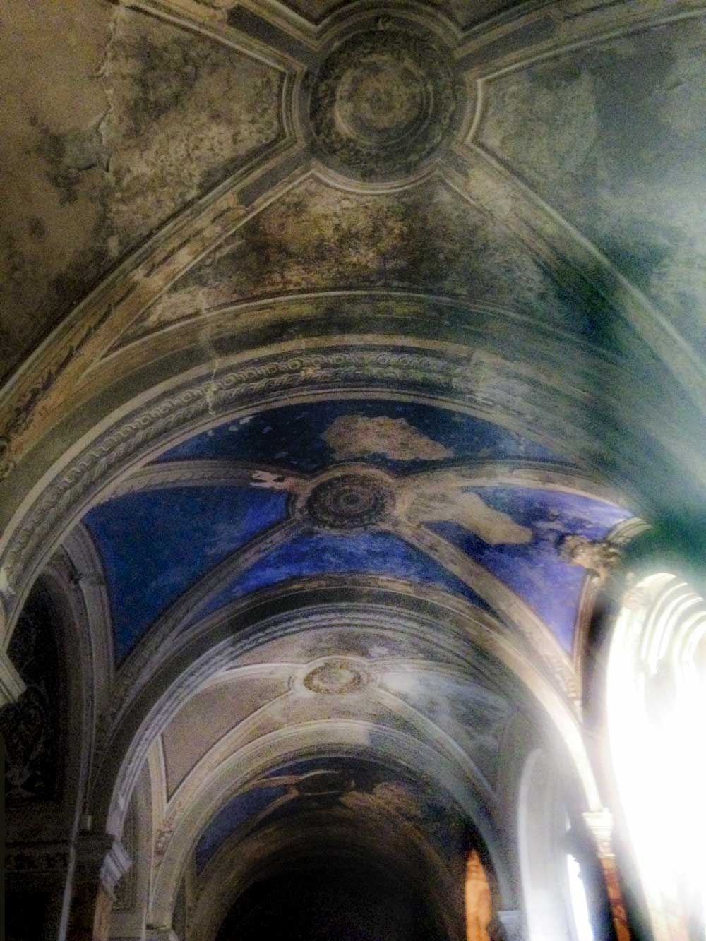 Gli affreschi lacerati, le pareti scrostate, le pitture compromesse, i decori abrasi, gli stucchi ammalorati.