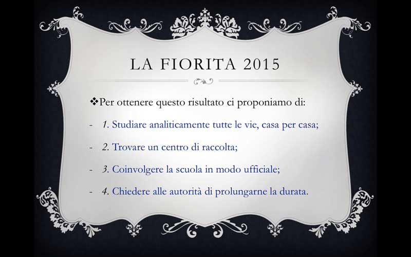 Come è noto, dal mese di marzo 2015 stiamo cercando di fare uno studio della sitazione attuale della Fiorita nepesina, con una mappatura generale e un’analisi accurata della posa in opera dei fiori e della realizzazione dei disegni, con l’intenzione e il tentativo concreto di mantenere viva l’attenzione e migliorare questa tradizione.