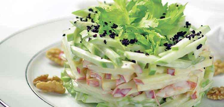 La famosa insalata Waldorf, che prende il nome dall'albergo Waldorf-Astoria di New York. Semplice e di sicuro effetto.
