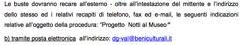 Si è trattato molto verosimilmente dell’iniziativa di un funzionario del MIBACT piuttosto “creativo”, che non ha minimamente pensato all’assurdità delle conseguenze del bando che andava a promuovere. Il bando originale era stato pubblicato sul sito del Ministero a questo indirizzo, dove al momento non è più reperibile: [http://www.valorizzazione.beniculturali.it/it/notizie-sp-428210175/647-avviso-pubblico-proposte-notti-al-museo.html], mentre è ancora possibile scaricare il pdf con la lista dei musei aderenti (Lista-NotteAlMuseo).